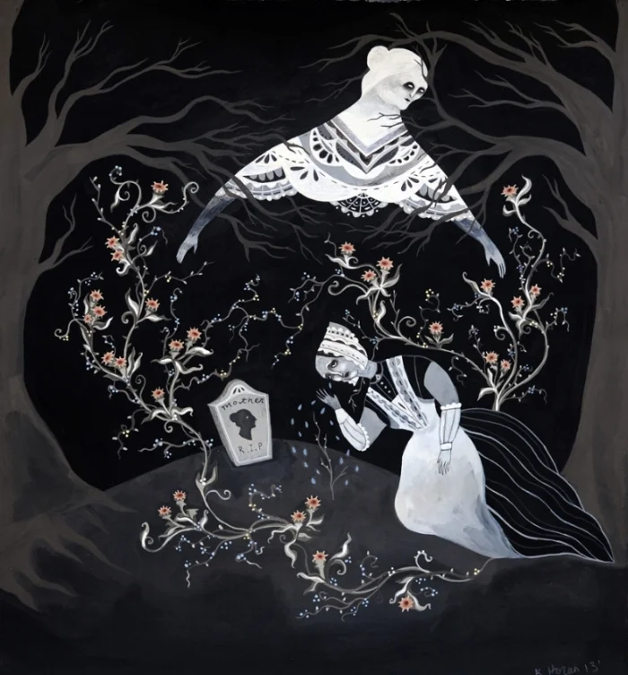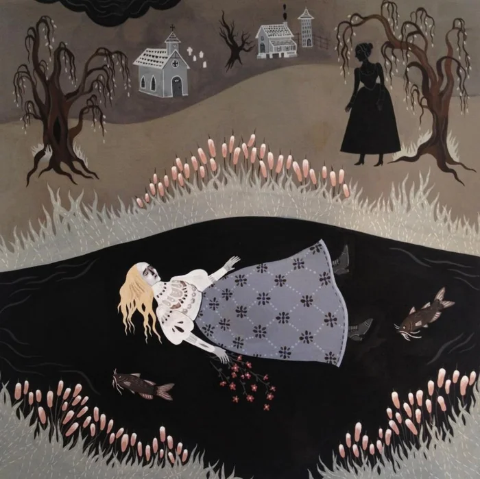 Sample illustrations for two Murder Ballads (traditional folk songs that tell the tale of a murder)