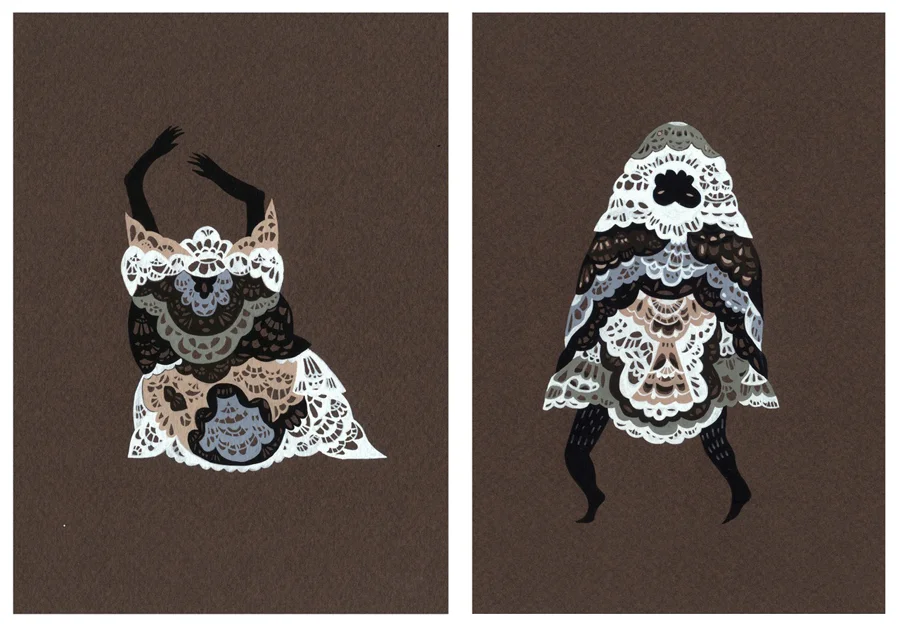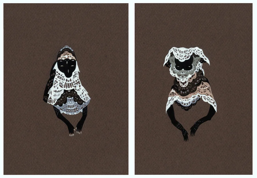 Lesser Nobles 1 & 2  gouache on paper  10" x 7"  2009