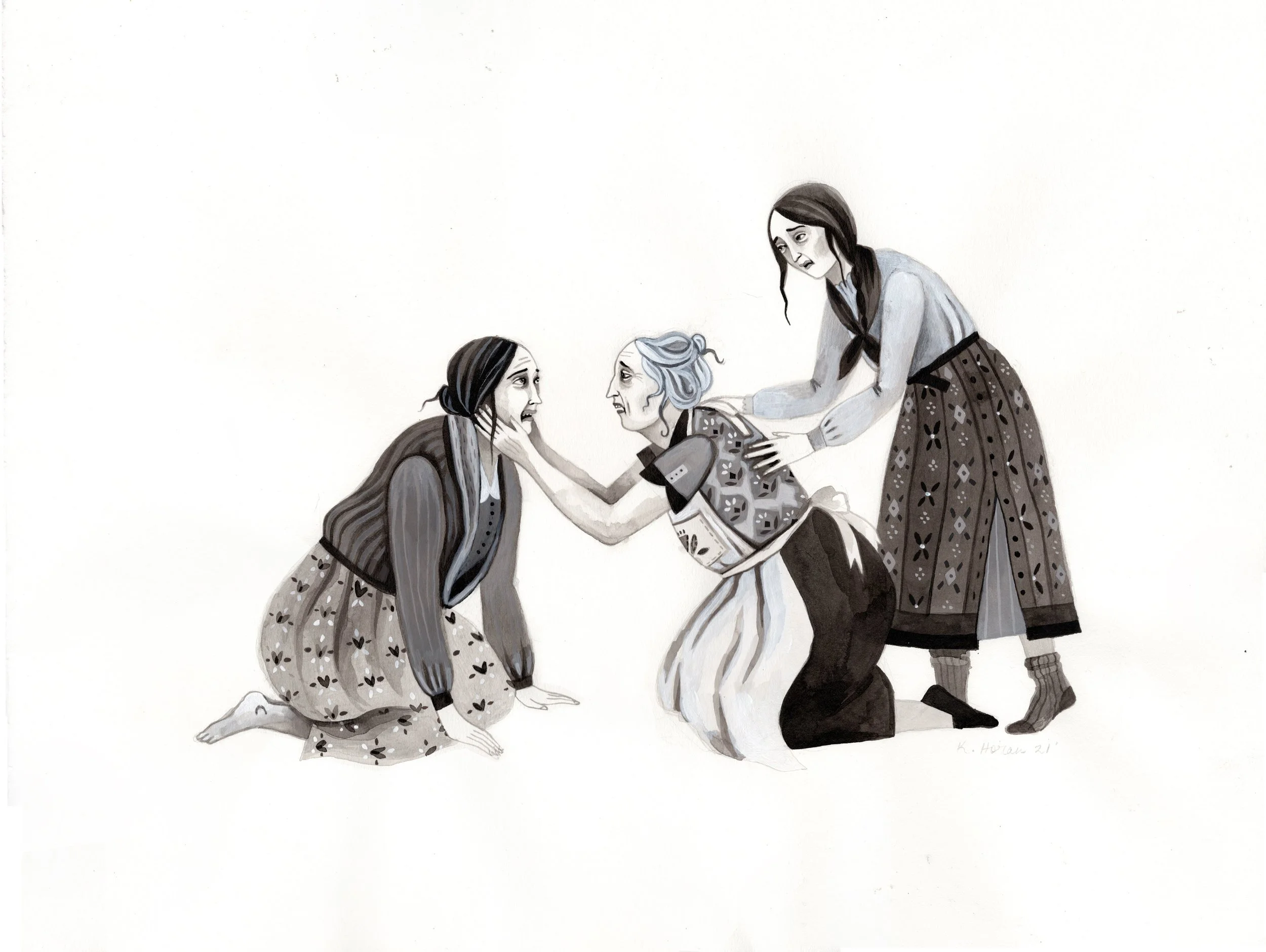 pencil, gouache and ink on paper, 16” X 12” , 2021